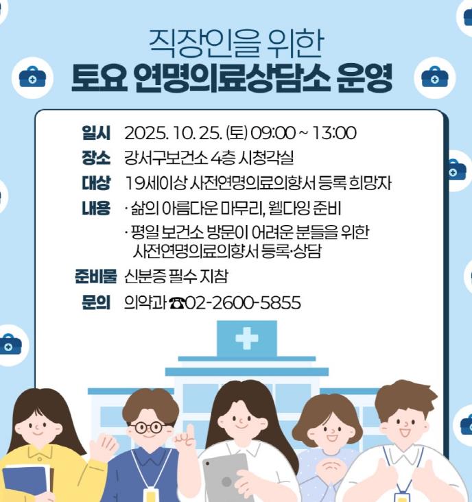 [뉴스스텝] 서울 강서구는 평일 보건소 방문이 어려운 직장인과 주민들을 위해 ‘토요 연명의료상담소’를 운영한다.