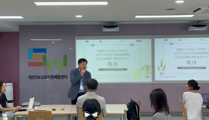 [뉴스스텝] 대전시교육청은 7월 24일부터 25일까지 대전교육정보원에서'초중등 보편적 교육현장 국제화사업(코누리, CONURI)'의 일환으로 국제교육협력 역량 강화 연수를 실시했다고 밝혔다.