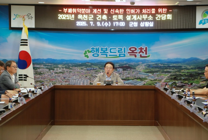 [뉴스스텝] 지난 9일 옥천군 군청 상황실에서 건축‧토목 부패 취약분야인 인허가의 투명성과 공정성을 높이고 신속한 행정 처리를 위한 간담회를 개최했다.