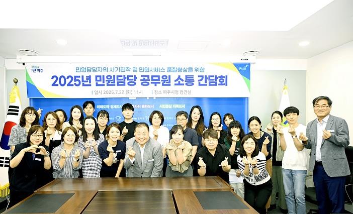 [뉴스스텝] 파주시는 지난 22일 시장 접견실에서 김경일 파주시장과 민원담당 공무원이 함께하는 2025년 민원담당 공무원 소통간담회를 개최했다고 밝혔다.