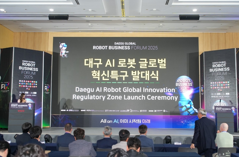 혁신특구 발대식은 FIX 2025 기간 중인 10월 22일 엑스코에서 개최됐으며, 중소벤처기업부, 중소벤처기업진흥공단, 특구 사업자, 그리고 세계적인 응용과학 연구기관 독일 프라운호퍼 IML 등과 함께 대구를 AI로봇 산업의 글로벌 중심으로 성장시키겠다는 비전을 공유했다.
