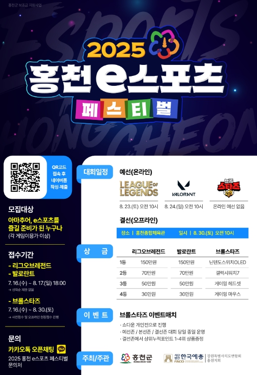 [뉴스스텝] 홍천군이 주최하고 (사)한국예총 홍천지회가 주관하는 2025 홍천 e스포츠 페스티벌이 8월 30일 홍천종합체육관에서 열린다.