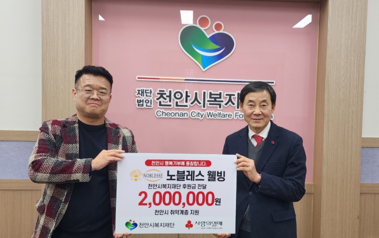 [뉴스스텝] (재)천안시복지재단은 지난 30일 노블레스 웰빙이 취약계층을 위한 후원금 200만 원을 기탁했다고 밝혔다.
