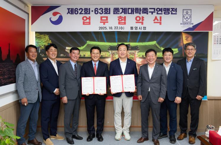 [뉴스스텝] 통영시는 지난 22일 2026~2027년'제62회·63회 춘계대학축구연맹전'유치 성공에 따른 업무협약을 체결하고 성공적인 대회 운영을 위해 상호 간 적극 협력하기로 밝혔다.