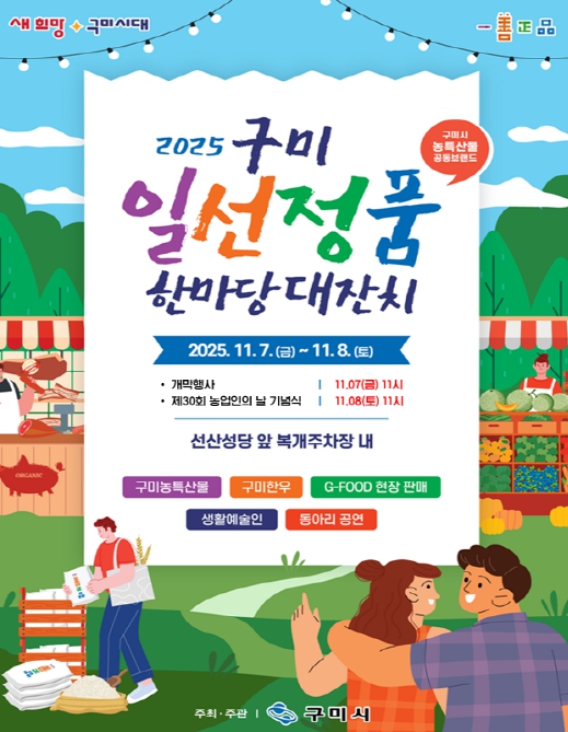 [뉴스스텝] 구미시는 11월 7일부터 8일까지 이틀간 선산읍 복개주차장 일원에서 ‘2025 구미 일선정품 한마당 대잔치’를 연다.