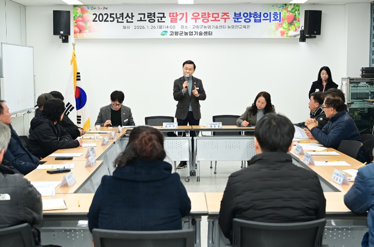 [뉴스스텝] 고령군은 1월 26일 농업기술센터 농업인교육관에서 ‘2025년산 고령군 딸기 우량모주 분양 협의회’를 개최했다. 이번 협의회는 2025년산 딸기 우량모주 공급 물량과 가격을 확정해 2026년 딸기 육묘 및 재배의 안정적 기반을 마련하기 위해 열렸다.