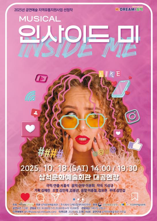 [뉴스스텝] 삼척시는 2025년 공연예술 유통지원사업의 일환으로 뮤지컬 인사이드 미를 오는 10월 18일 삼척문화예술회관 대공연장에서 선보인다.