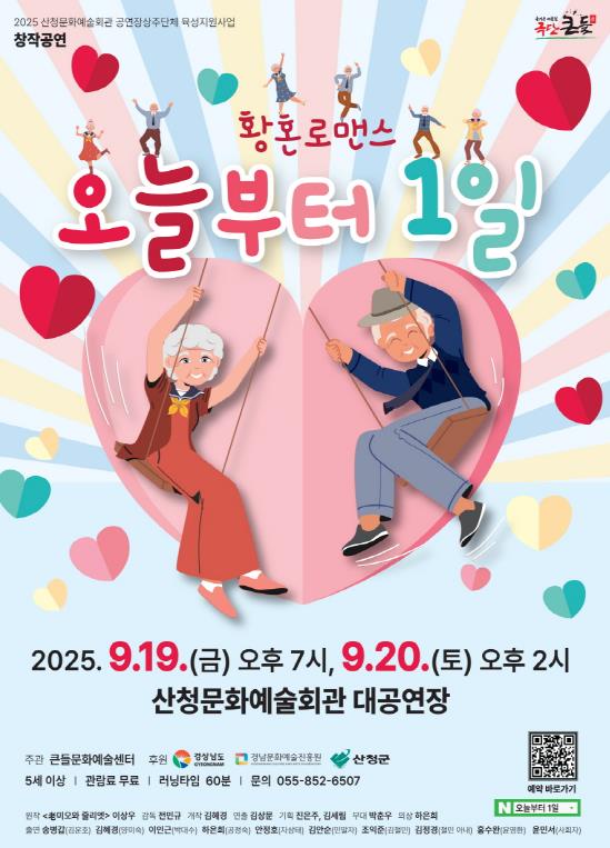 [뉴스스텝] 산청군은 오는 19일과 20일 산청문화예술회관에서 황혼로맨스 ‘오늘부터 1일’ 공연을 마련했다고 17일 밝혔다.
