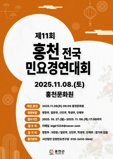 [뉴스스텝] 홍천군은 11월 8일 홍천문화원에서 ‘제11회 전국민요경창대회’를 개최한다고 밝혔다.
