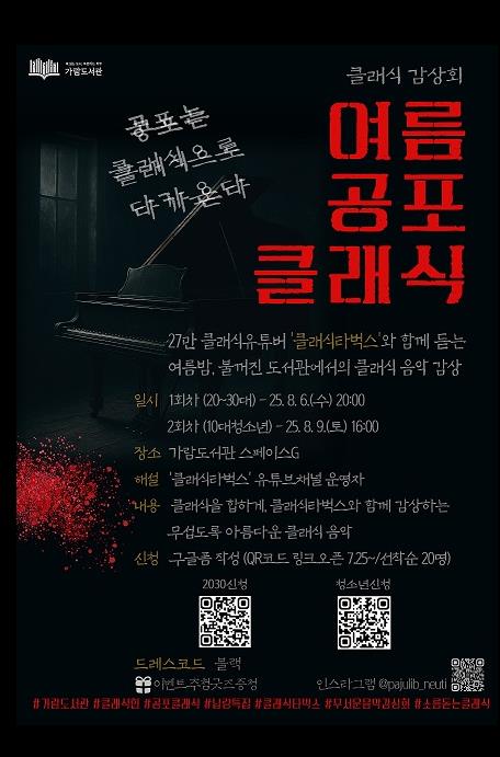 파주시 가람도서관, 엠제트(MZ)세대와 함께하는 납량특집 '여름 공포 클래식 감상회' 운영