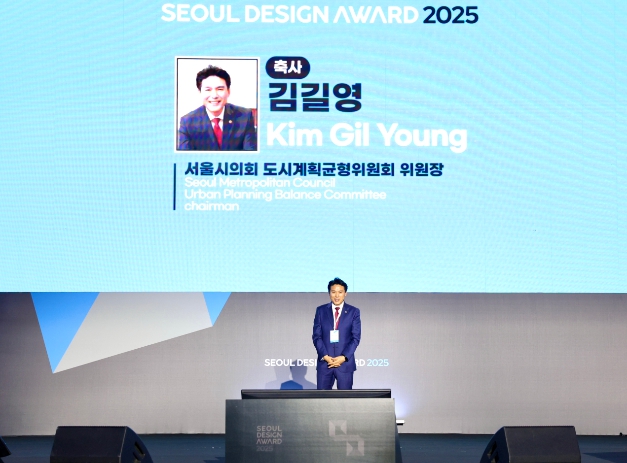 [20251027100131-73984][뉴스스텝] 서울특별시의회 김길영 도시계획균형위원장(국민의힘, 강남6)은 24일 동대문디자인플라자(DDP) 아트홀에서 개최된 '서울디자인어워드 2025' 시상식에 참석하여 축사를 전하고, 수상자들을 격려했다.