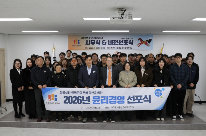 [뉴스스텝] 파주도시관광공사는 지난 1월 2일 본청 대회의실에서 ‘2026년 윤리경영 선포식’을 개최하여 청렴과 인권을 기반으로 한 윤리경영 실천 의지를 대내외에 공식 선언했다.