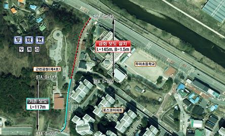 이번 공사는 두마초등학교 인근 단절된 보행 구간에 보도를 새롭게 조성하는 것으로 지역 주민과 학생들의 보행환경 개선을 목표로 한다.