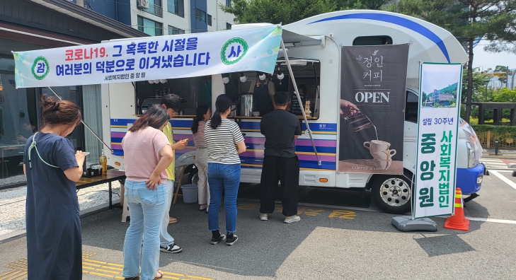 [뉴스스텝] 사회복지법인 중앙원(대표 김영규)은 최근 사회복지법인 중앙원 설립 30주년을 맞아 홍천군보건소를 찾아 소외된 이웃의 곁을 지켜주는 보건·복지 관계 공무원과 사회복지법인 직원들에게 감사의 마음을 담아 커피차 행사를 진행했다.