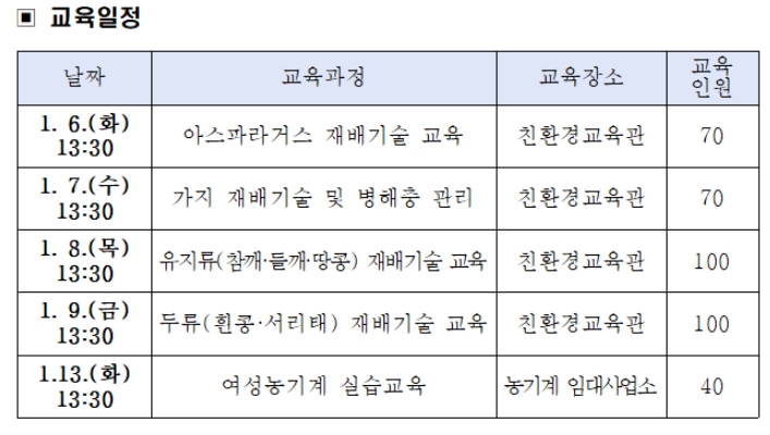 한편, 2026년 새해농업인실용교육은 지난해 12월 읍·면·동을별 벼농사 교육을 시작으로, 1월 밭작물분야 전문교육까지 단계적으로 운영되고 있다.
