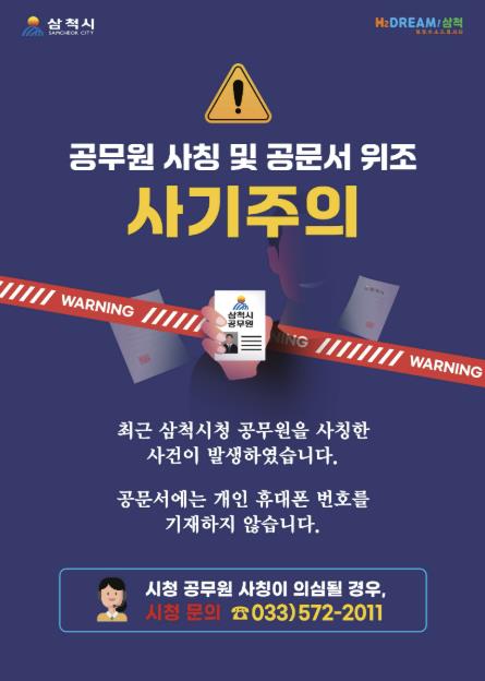 삼척시, 속지 마세요! 공무원 사칭 사기 기승…시민 주의 필요