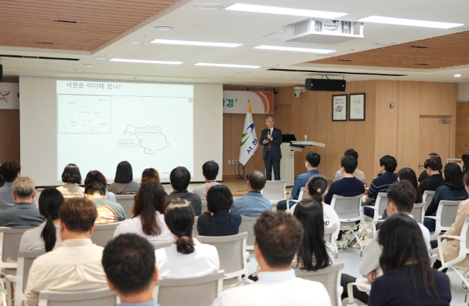 [뉴스스텝] 서천군은 지난 17일 군청 대회의실에서 공직자 120명을 대상으로 국립생태원 이창석 원장을 초청해 ‘서천의 생태와 환경’을 주제로 특별강연을 개최했다.