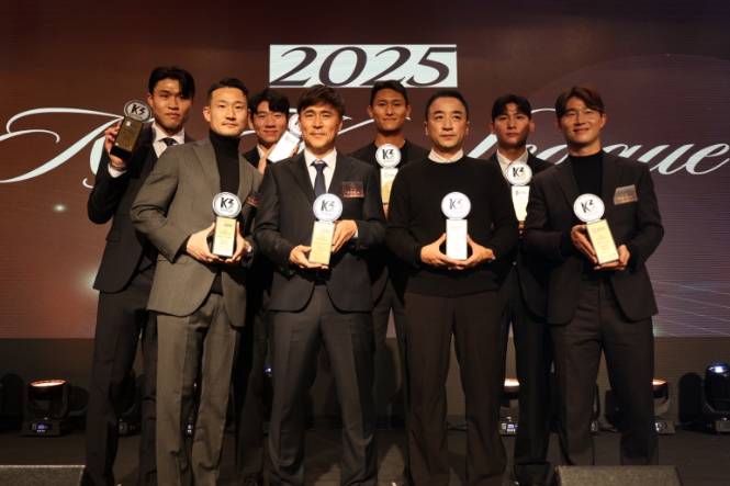 [뉴스스텝] 10일 오후 2시, 서울 메이필드호텔에서 열린‘2025 K3·K4리그 어워즈’에서 김해FC2008 선수단이 최우수 지도자와 베스트일레븐, 영 플레이어 부문에서 8명의 수상자를 배출하며 축구 전통 강호의 저력을 증명했다.