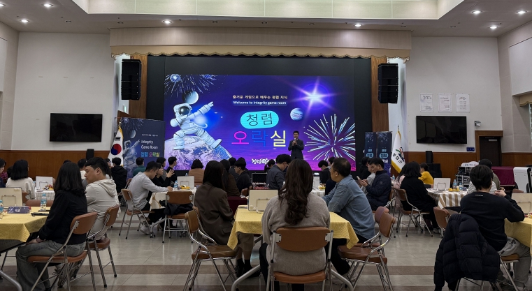 행사는 청탁금지법, 이해충돌방지법, 공무원 행동강령 등 공직자의 청렴성과 관련된 주요 법령을 중심으로 구성된 퀴즈를 팀별로 풀이하는 방식으로 진행되어 직원들의 관심을 이끌고 청렴 이해도를 높였다.