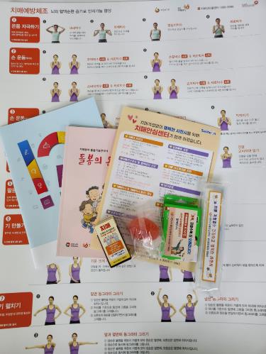 '마음 든든! 치매안심 꾸러미'는 ▲에코백 ▲인지 능력 향상 워크북 ▲악력볼 ▲건강관리 영양제 ▲칫솔세트 ▲위생밴드 ▲치매가족 돌봄기술 안내책자 ▲치매예방 운동 포스터 등 치매예방과 일상 건강관리에 도움이 되는 물품들로 구성돼 있다.
