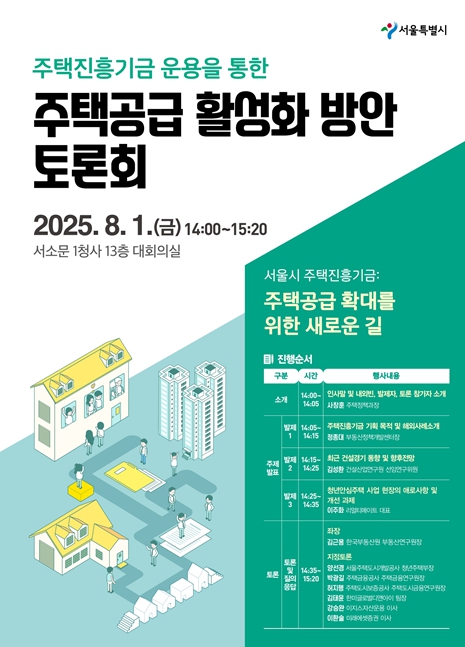 이러한 정책기조의 연장선상에서, 서울시는 8월 1일 서소문청사에서 ‘서울시 주택진흥기금: 주택공급 확대를 위한 새로운 길’을 주제로 정책 토론회를 연다. 이번 토론회는 민간 주택공급 현장의 목소리를 직접 듣고 기금 도입의 실효성과 운용방향을 점검하기 위해 마련된 자리다.