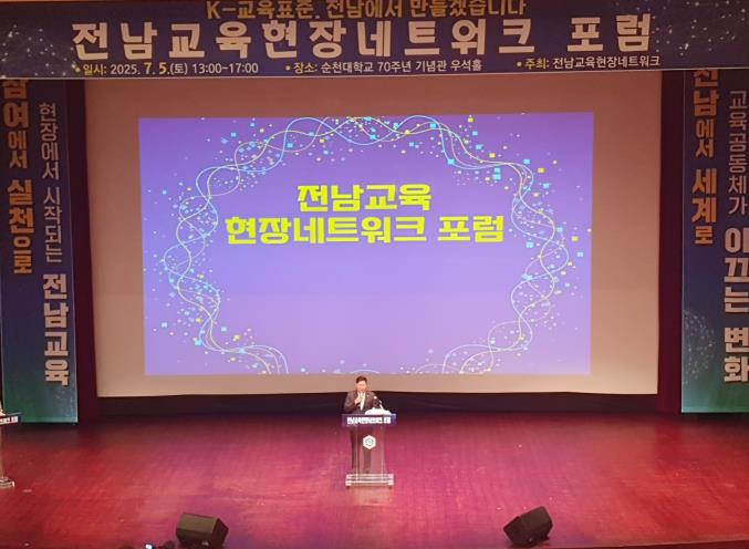 [뉴스스텝] 전라남도의회 김정희 교육위원장은 2025년 7월 5일 순천대학교 70주년 기념관 우석홀에서 열린 ‘전남교육 현장네트워크 포럼’에 참석해, 전남교육의 미래와 혁신을 위한 강한 의지를 밝혔다.