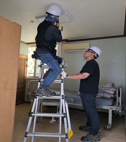 | ▲ 대구 동구의 한 요양시설에 취약계층을 위한 LED전등 교체 공사를 시행하고 있다. |
