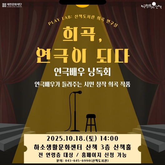 ▲ 제천문화재단, 시민 창작 희곡으로 낭독회 선보인다 |