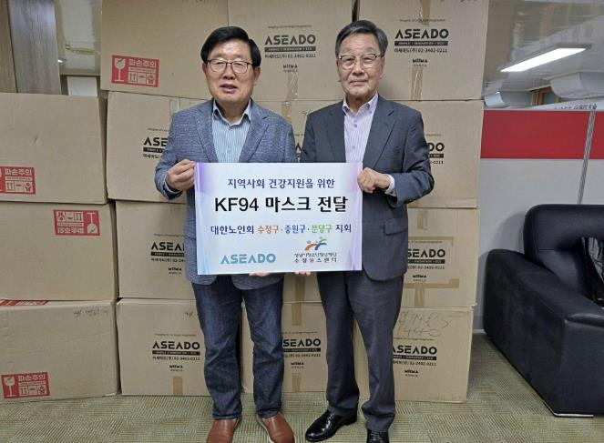 [뉴스스텝] 성남시청소년청년재단 수정유스센터는 지난 18일, 성남시 어르신들의 건강한 일상과 여름철 호흡기 건강 보호를 위해 아세아도 주식회사에서 기부받은 KF94마스크를 대한노인회 성남시 분당구 지회에 전달했다고 밝혔다.