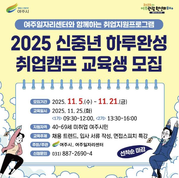 | ▲ 여주시, 2025 신중년 하루완성 취업캠프 교육생 모집 |