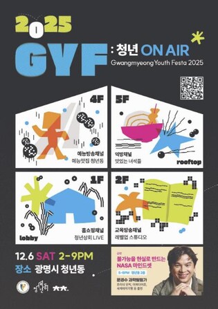 [뉴스스텝] 광명 청년들이 직접 기획한 도시 축제가 새로운 형식으로 펼쳐진다.광명시는 오는 6일 열린시민청과 청년동 일원에서 ‘2025 청년대회 G.Y.F 2025 : 청년 온에어’(Gwangmyeong Youth Festa)를 개최한다.G.Y.F 2025는 청년의 정책 참여를 넓히고 지역 청년 간 교류 기반을 강화하기 위해 마련한 행사로, 청년동 전체를 하나의 ‘청년 방송국’으로 재구성해 층별로 예능·먹