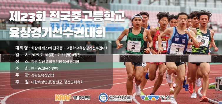 한국중·고육상연맹이 주최하고, 강원특별자치도육상연맹이 주관하며, 대한육상연맹, 정선군, 정선군체육회가 후원하는 이번 대회는 국내 최대 규모의 청소년 육상대회 중 하나로서 전국의 중학교 및 고등학교 육상선수들이 대거 출전해, 실력을 겨루고 육상 인재로서의 성장 가능성을 보여줄 것으로 기대된다.