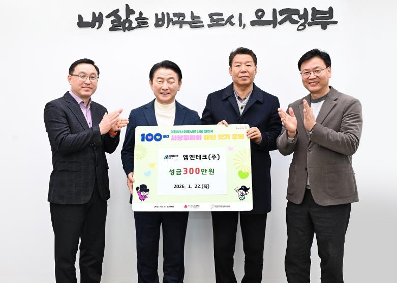 [뉴스스텝] 의정부시는 1월 22일 엠엔테크(주)가 관내 저소득층을 위해 성금 300만 원을 기부했다고 밝혔다.
