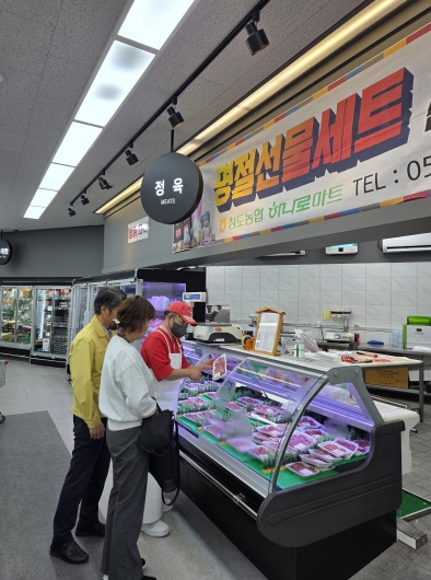 ▲ 추석 명절 대비 성수식품 및 축산물이력제 특별 점검 실시사진(청도농협하나로마트) |