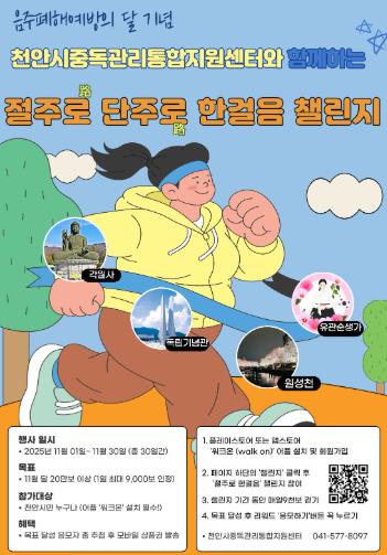 성준모 천안시중독관리통합지원센터장은 “시민들이 건강한 걷기 문화를 통해 자연스럽게 절주를 실천할 수 있도록 설계된 캠페인”이라며 “중독의 위험성을 인식하고, 건전한 생활습관으로 이어가는 계기가 되길 바란다”고 말했다.