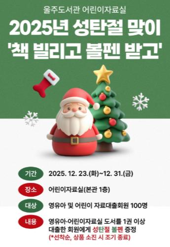 행사 기간 중 어린이 자료실을 방문해 도서를 대출하는 회원에게는 크리스마스 기념 볼펜을 선물로 증정한다.