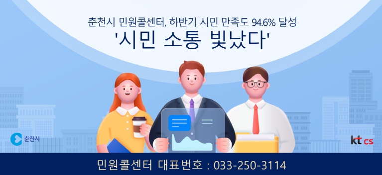춘천시 관계자는 “조사 결과는 곧 민원콜센터가 시민의 삶에 얼마나 밀접하게 다가가고 있는지 알려주는 셈”이라며 “앞으로도 위탁사와 협력해 친절하고 질 높은 서비스를 제공하도록 역량을 집중하겠다”고 말했다.