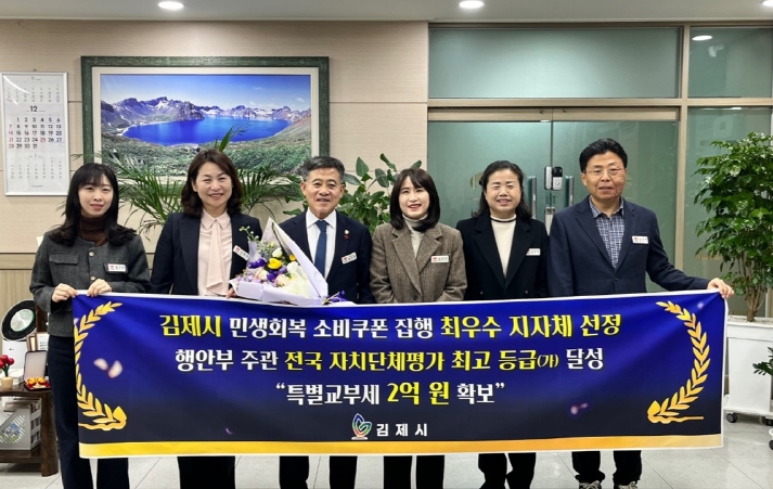 정성주 김제시장은 “이번 성과는 시민 여러분의 적극적인 관심과 현장 공무원들의 신속한 대응이 함께 만들어낸 결과”라며, “앞으로도 민생경제 회복과 지역경제 활성화를 위한 정책을 더욱 촘촘히 추진해 나가겠다.”라고 말했다.