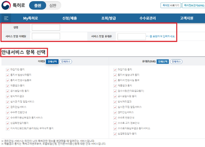 특허청은 특허출원 관련 누리집인 '특허로'에 주기적으로 팝업창을 제공하여, 특허고객이 전화번호와 이메일 주소 등 연락처 정보를 최신 상태로 유지하도록 안내하고 있다. 고객정보를 최신 상태로 유지하는 것은 알림서비스의 정확한 전달은 물론, 특허행정의 신속한 처리에 필수적인 요소다.
