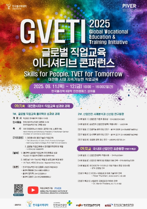 [뉴스스텝] 고용노동부 한국폴리텍대학은 한국산업안전보건공단, 한국직업능력연구원, 한국산업기술융합학회와 함께 ‘글로벌 직업교육 이니셔티브(GVETI) 콘퍼런스’를 11일부터 2일간 인천캠퍼스에서 개최한다고 밝혔다.