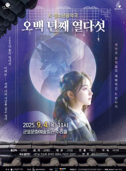 [뉴스스텝] 군포문화재단은 세종국악관현악단과 함께 오는 9월 4일 오전 11시, 군포문화예술회관 수리홀에서 K-청소년음악극 '오백 년째 열다섯'을 선보인다.