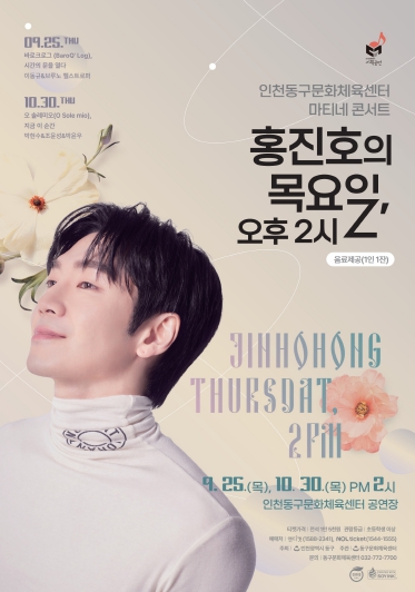 [뉴스스텝] 인천 동구문화체육센터가 처음 선보이는 마티네 콘서트 '목요일, 오후 2시'가 오는 25일 오후 2시 동구문화체육센터 공연장에서 개최된다. 이번 마티네 콘서트는 9월과 10월, 총 2회의 공연으로 진행되며, 첼리스트 홍진호의 친절하고 섬세한 진행과 함께 공연마다 매력적인 아티스트들의 무대를 만날 수 있다.