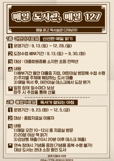 ▲ 경주시립도서관, 매일 독서 캠페인 ‘매일 도서관, 매일 127’ 추진 |