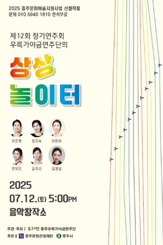[뉴스스텝] 충주 - 충주 우륵 가야금 연주단이 어린이들이 가야금과 국악을 놀이처럼 즐기며 전통 음악에 친숙해질 수 있도록 구성된 체험형 국악 공연 ‘우륵 가야금 연주단의 상상 놀이터’를 오는 7월 12일 토요일 오후 5시 충주 음악 창작소에서 개최한다.