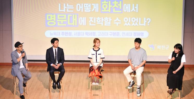 ▲ 화천군이 오는 13일 지역출신 명문대 재학생 등을 초청해 지역 청소년과 학부모들을 위한 토크쇼를 개최한다. 사진은 지난 2022년 8월 열린 토크쇼 |