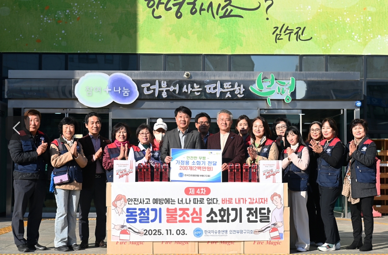 이문호 한국자유총연맹 부평구지회장은 “지역 안전 환경 조성에 도움이 돼 기쁘고, 앞으로도 지역사회에 기여하는 활동에 적극적으로 참여하겠다”고 말했다.