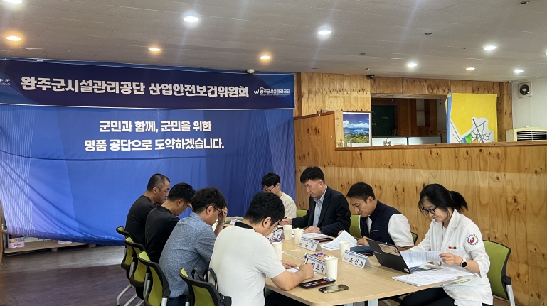 [뉴스스텝] 완주군시설관리공단이 최근 근로자위원과 사용자위원 등 총 9명이 참석한 가운데 ‘2025년 3분기 산업안전보건위원회’를 열고 주요 현안을 논의했다.