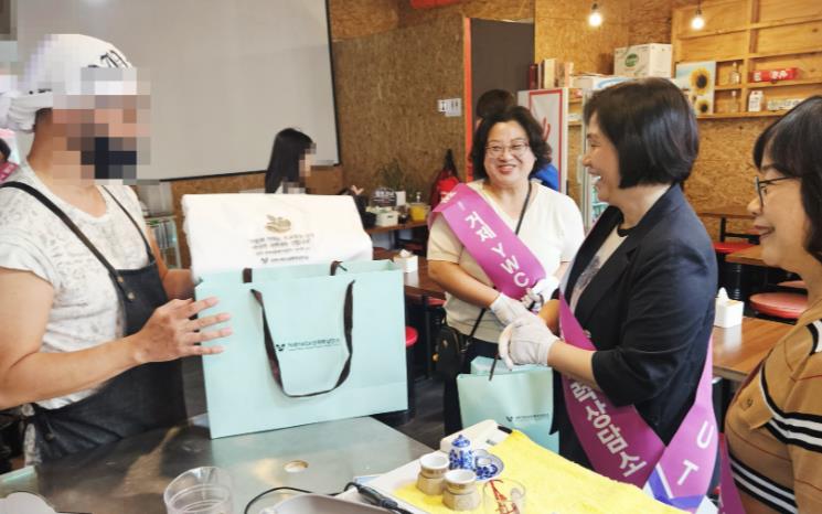 지난 23일 아주동에서 펼쳐진 이번 캠페인은 ‘사람의 가치는 주고받는 것이 아니라 지켜내는 것입니다’라는 슬로건으로 상가 종사자 및 이용 시민들에게 성매매 문제의 심각성을 알리고, 성평등한 사회문화 조성의 필요성을 전하기 위해 일회용 앞치마 1,000부를 제작해 각 상가에 직접 전달하는 방식으로 펼쳐졌다.