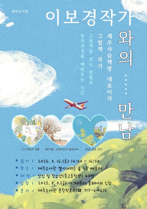 제주도서관 관계자는 “이번 만남이 작가와 독자 간의 따뜻한 교감을 나누는 시간이 되기를 바라며 앞으로도 지역의 문화예술 인재와 함께하는 독서문화 프로그램을 지속적으로 운영하겠다”고 말했다.