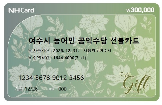 [뉴스스텝] 여수시는 2026년부터 농어민 공익수당 지급방식을 기존 ‘여수사랑상품권(지류형)’에서 ‘선불카드’로 전환한다고 밝혔다.